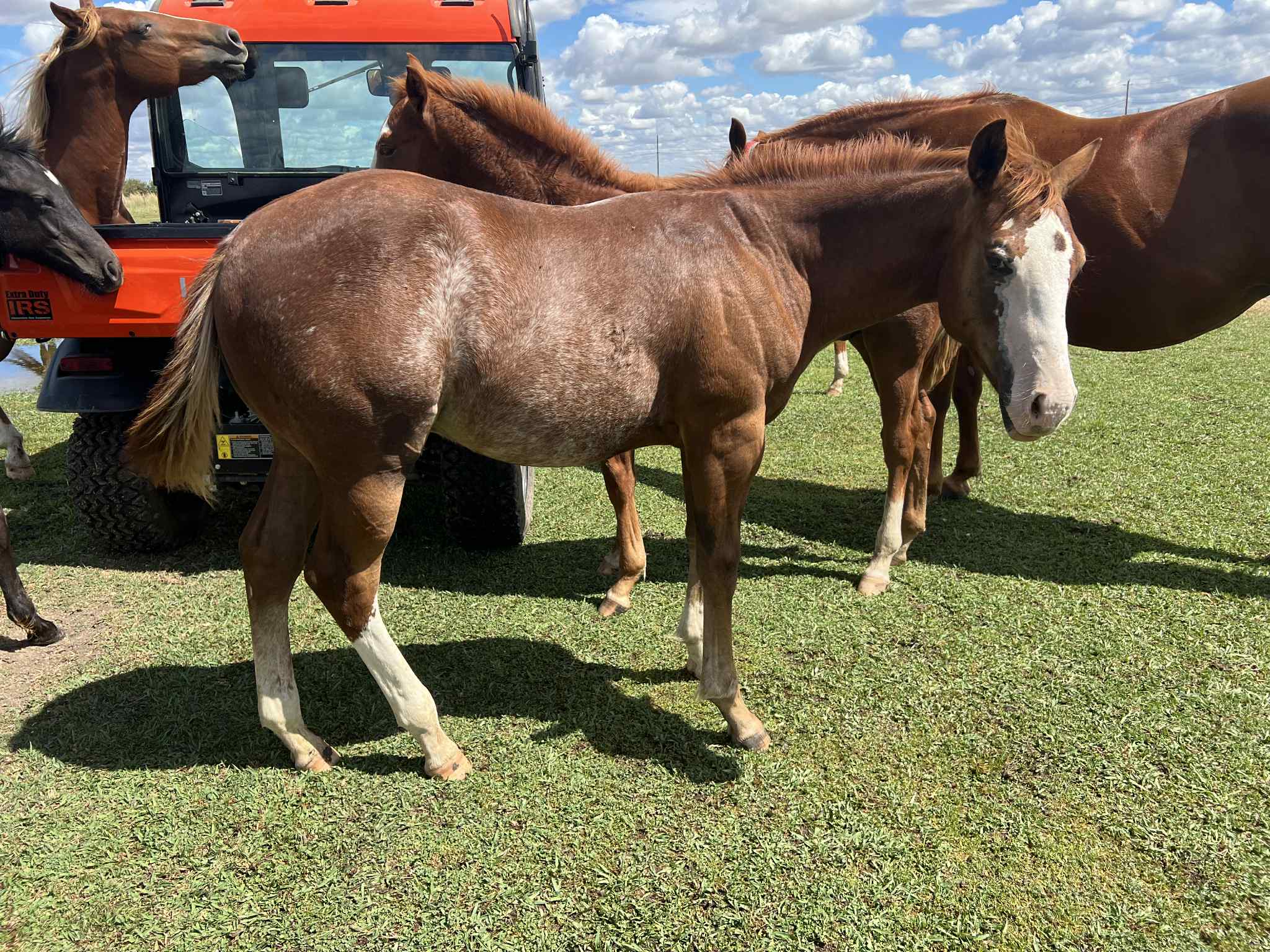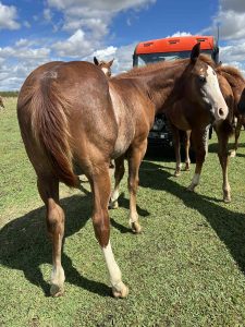 This Colt has the WOW WOW WOW Factor and a power packed pedigree – This gorgeous colt checks all the boxes for looks, great bone, athletic, smart and super sweet. We feel he will have the size and strength to do whatever job is asked of him. He has a great personality and loves people. 6 panel N/N